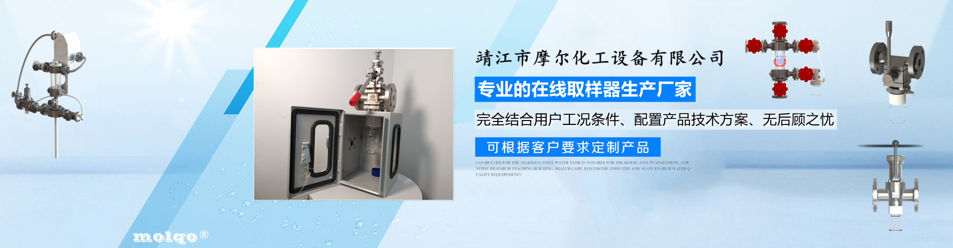 靖江市摩爾化工設(shè)備有限公司位于蘇中明珠——江蘇省靖江市城南工業(yè)園區(qū)東進(jìn)路北側(cè)天元艾爾瑞內(nèi),另有生產(chǎn)基地位于靖江市經(jīng)濟(jì)技術(shù)開(kāi)發(fā)區(qū)新號(hào)路1號(hào)鼎電科技園內(nèi)。我公司由數(shù)名長(zhǎng)期從事化工生產(chǎn)、氟塑襯里模具開(kāi)發(fā)以及機(jī)械自控設(shè)備的專(zhuān)業(yè)人員共同合作成立,致力于提供客戶最優(yōu)的高效在線取樣、反應(yīng)及精餾分離設(shè)備,為客戶提供合理的設(shè)備選型方案,以幫助客戶提高綜合生產(chǎn)效率以及改善生產(chǎn)現(xiàn)場(chǎng)環(huán)境為目標(biāo)。 本公司主要制造及銷(xiāo)售的產(chǎn)品有:釜用在線取樣裝置,管道取樣閥,釜用清洗噴淋裝置、搪玻璃設(shè)備、GMP專(zhuān)用搪玻璃設(shè)備、氟塑襯里設(shè)備、攪拌器、釜用機(jī)械密封、氣動(dòng)閥門(mén)及搪玻璃管道、襯氟閥門(mén)管道、非標(biāo)不銹鋼容器,精餾塔塔器、片式冷凝器及PTFE密封件、鋯、鈦、鉭、鎳等加工件制品。我司是一家集研發(fā)銷(xiāo)售、設(shè)計(jì)咨詢(xún)服務(wù)于一體的專(zhuān)業(yè)···